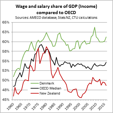 “The Productivity Commission asserts that “New Zealand has not experienced the significant falls in the labour income share seen in other countries over the last two decades.” That ignores the longer run of evidence and the effect of the changes in employment law. New Zealand still has one of the lowest wage and salary shares of the country’s income in the OECD,” Bill Rosenberg says.